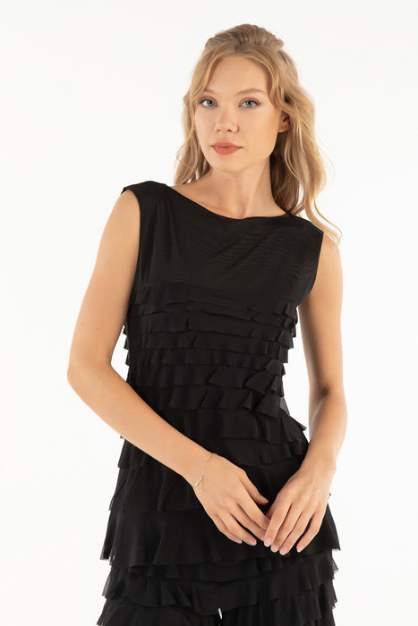 Isle by Melis Kozan Black Mesh Ruffled Miramar Top 421-15140