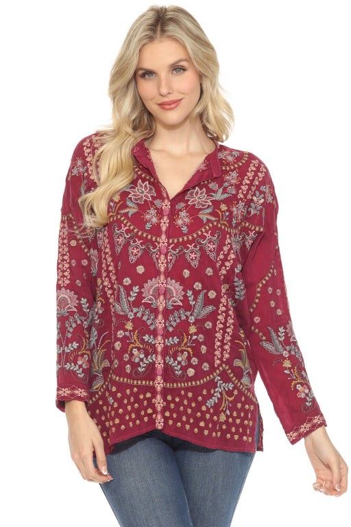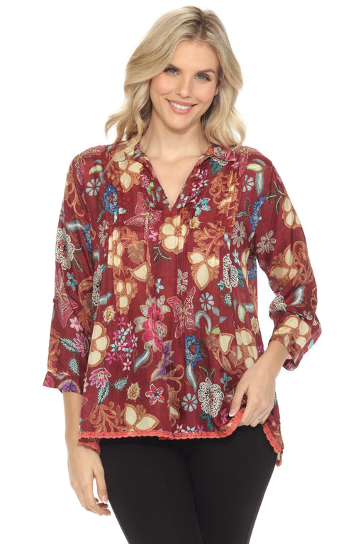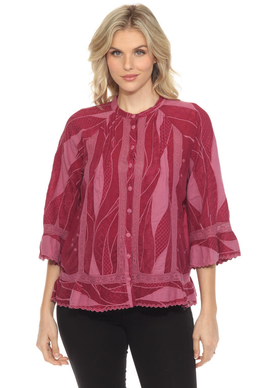Johnny Was Jade Burgundy Liliever Raglan Blouse L17825-9