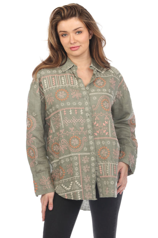 Johnny Was White Embroidered Button Down Shirt 4469-JW