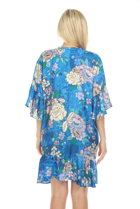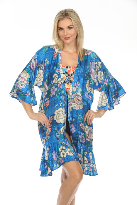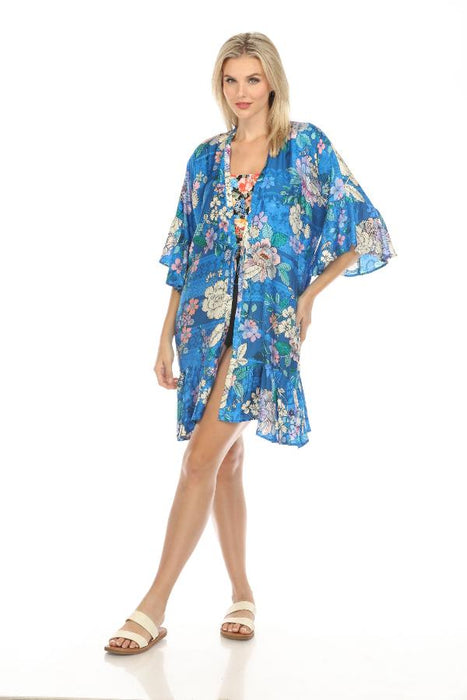 Johnny Was Blue Dove Ruffle Swim Cover-Up Kimono Boho Chic CSW5123-N