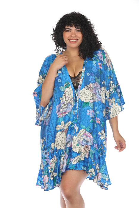 Johnny Was Blue Dove Ruffle Swim Cover-Up Kimono Plus Size CSW5123-NX
