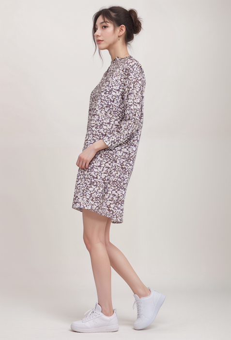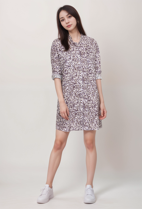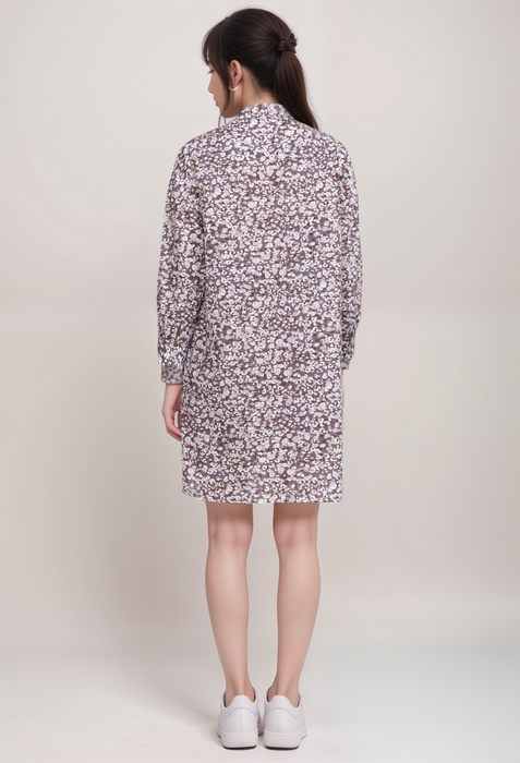 The Johnny Was Calme Mandarin Collar Shirt Dress brings a feminine twist to classic shirting. Designed from soft cotton, this dress features a button-front closure with shell buttons, a round neck, long sleeves, and two patch pockets at the chest. The floral print adds a vibrant touch, while the hi-low hem offers a modern silhouette. Perfect for pairing with sneakers or flat shoes for an effortless, stylish look.