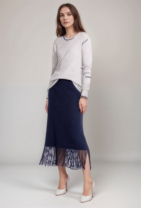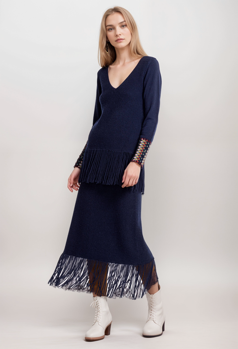 Created to stand out in a crowd, the Isadora Fringe Skirt offers a dazzling drape with each step you take. Carefully crafted from a cozy wool and cashmere blend, this midi-length skirt easily becomes the center of attention. Pair with the coordinating Isadora Fringe Top and knee-high boots for a dramatic look.