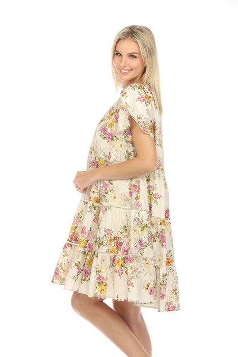 Johnny Was Jade Magnolia Tiered Floral Mini Dress Boho Chic L35223