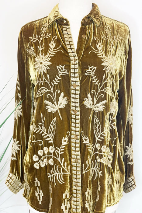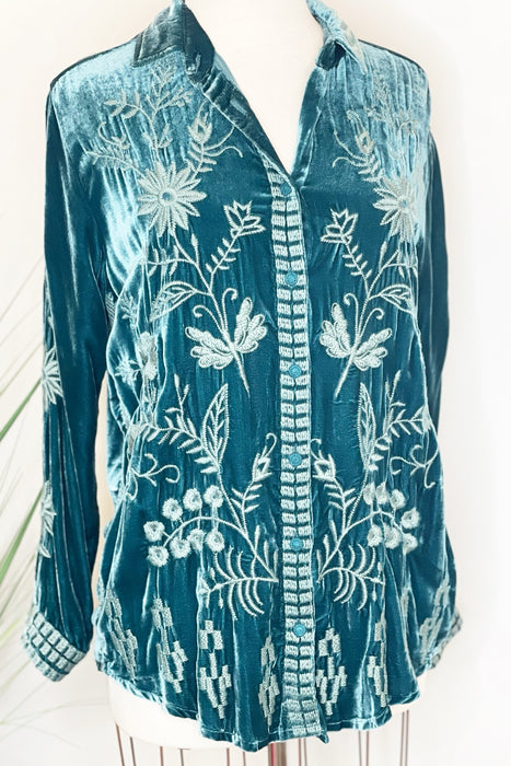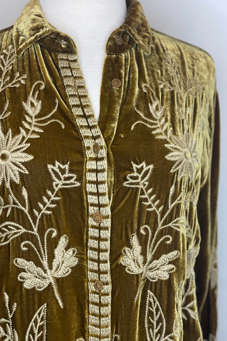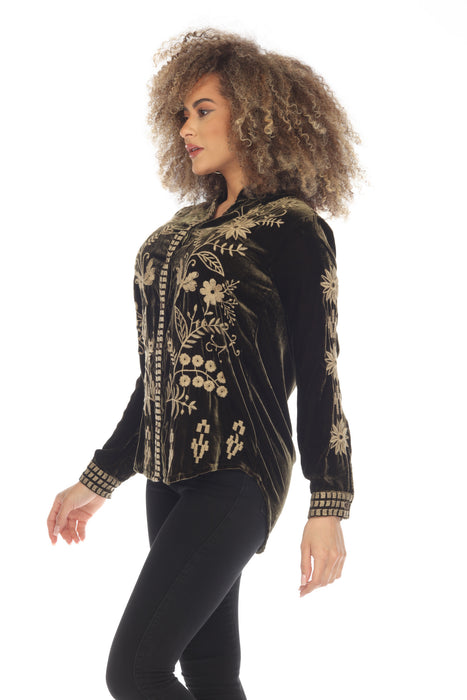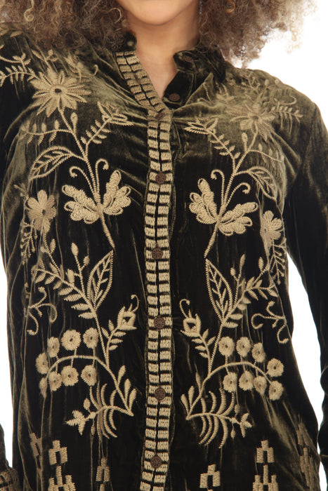 Johnny Was JWLA Georgina Velvet Embroidered Oversized Shirt Boho Chic J10723 *