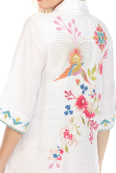 Many, if not most, tops designed and manufactured by Johnny Was are unstructured creating a "boho", casual look. Many styles also have drop-shoulder seams which accentuates an over-sized look. This type of styling is not intended to be a fitted silhouette. Please consider these observations on JW fit as you review the measurements in our listings.