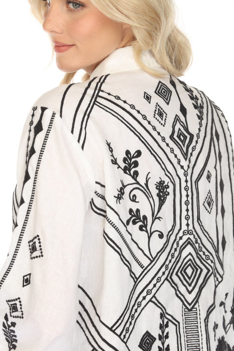 Johnny Was JWLA Kimono Sleeve Linen Shirt J15524 *