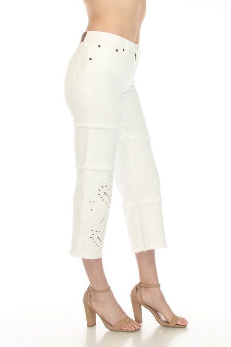 Johnny Was JWLA White Sevilla Cropped Wide Leg Denim Jeans JWD1096