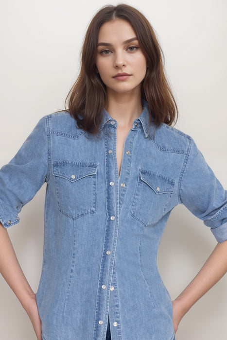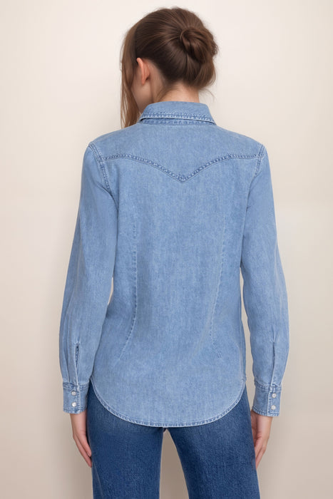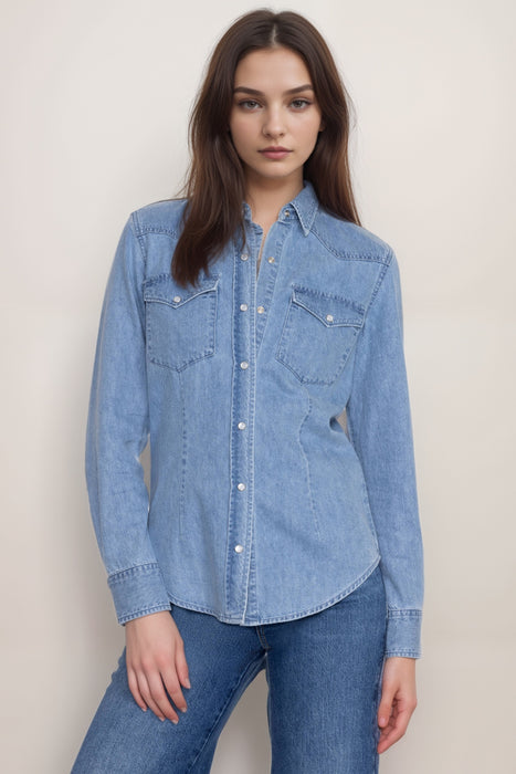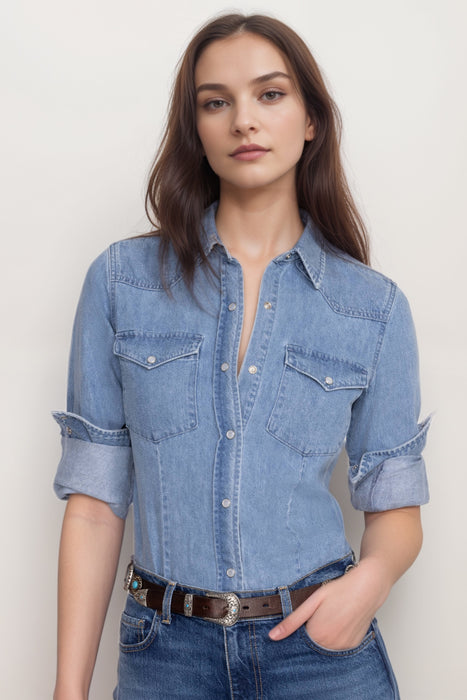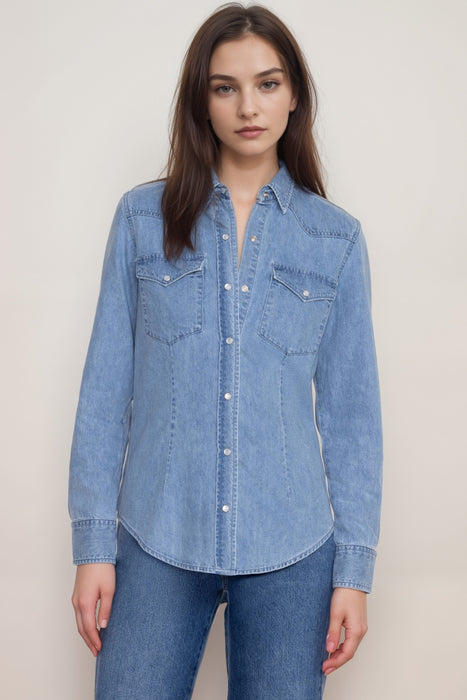 Classic meets modern in the Johnny Was Provence Denim Shirt, a versatile solid color top crafted from softt hemp denim in a stylish light wash. With its timeless appeal and breathable comfort, this shirt is perfect for layering or wearing solo through every season. Designed with a traditional collar, long sleeves, and functional chest pockets, it features charming pearl snap buttons that add a vintage-inspired touch. The soft texture and relaxed fit make it an effortlessly chic choice for casual days, weekend outings, or travel-ready looks. Whether you pair it with jeans for a double-denim vibe or throw it over a dress as a lightweight outer layer, the Provence Denim Shirt brings polished ease to your everyday wardrobe.