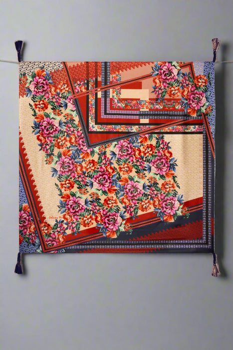 Add a pop of color and luxury to any outfit with the Johnny Was Window Scarf! Made from lightweight, luxe silk, this gorgeous square scarf drapes effortlessly, making it a must-have accessory. The vibrant floral print brings an eye-catching touch of artistry, while the delicate tassels at the corners add a playful flair. Versatile and chic, this scarf can be styled in multiple ways—wear it as a headscarf, tie it around your neck, drape it over your shoulders, or even wrap it around your bag for a fashion-forward touch.