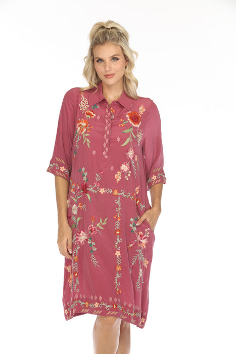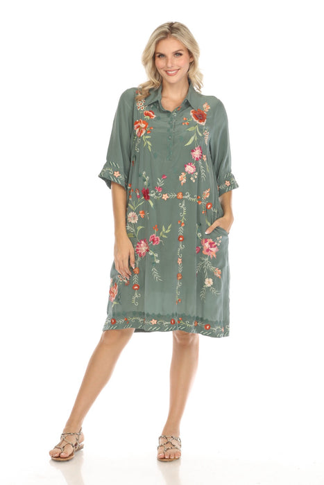 - Johnny Was Workshop W38024 Henley Kimono Sleeve Dress