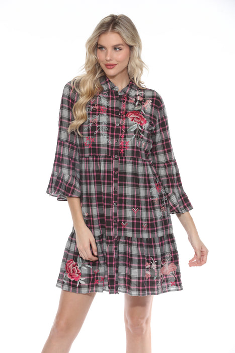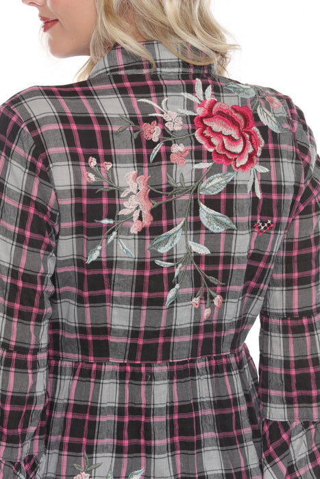 Johnny Was Workshop Plaid Embroidered Shirt Dress W34423