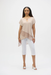 The Joseph Ribkoff Top is crafted from airy gauze fabric, offering a lightweight and breathable feel. The solid-color design is versatile, while the boxy relaxed fit and scoop neck provide a comfortable, laid-back silhouette. Short sleeves add a breezy touch, and the front patch pocket adds a practical detail. Featuring ruching with an adjustable drawstring and an asymmetric hem, this top combines effortless style with a flattering shape, making it perfect for casual wear. Best paired with Joseph Ribkoff 252123 pant.