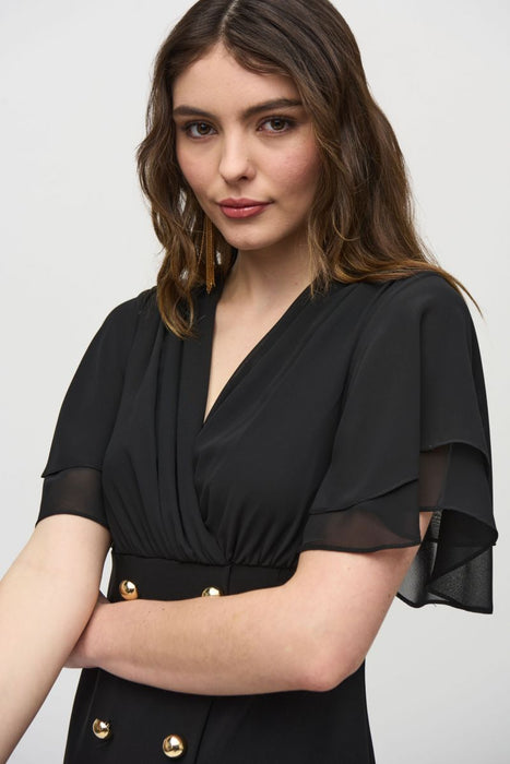 Joseph Ribkoff Black Double-Breasted Faux Wrap Dress 244126