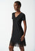 Joseph Ribkoff Black Fringe Hem V-Neck Short Sleeve T-Shirt Dress 242113