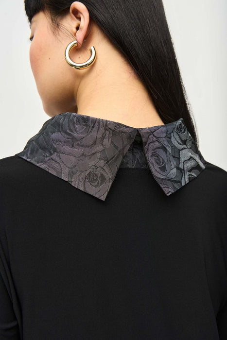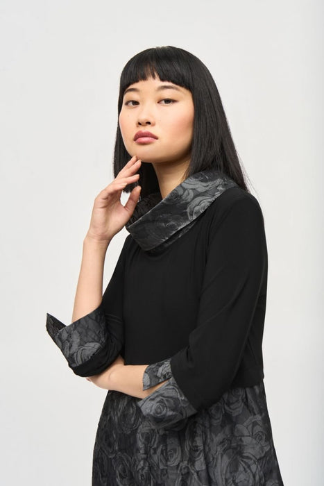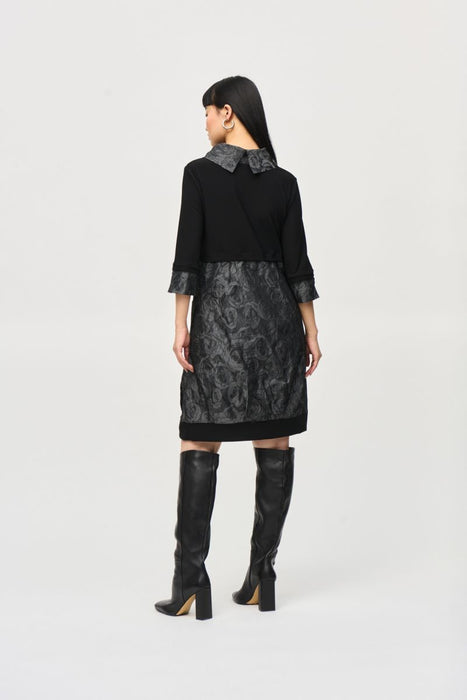 Joseph Ribkoff Black/Grey Floral Print 3/4 Sleeves Cocoon Dress 243126