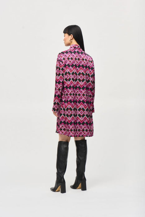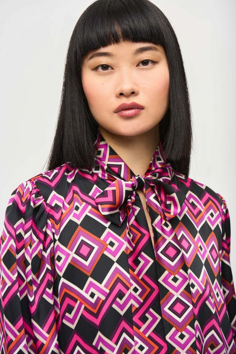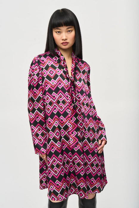 Joseph Ribkoff Black/Multi Geometric Pussy Bow Satin Shift Dress 243174