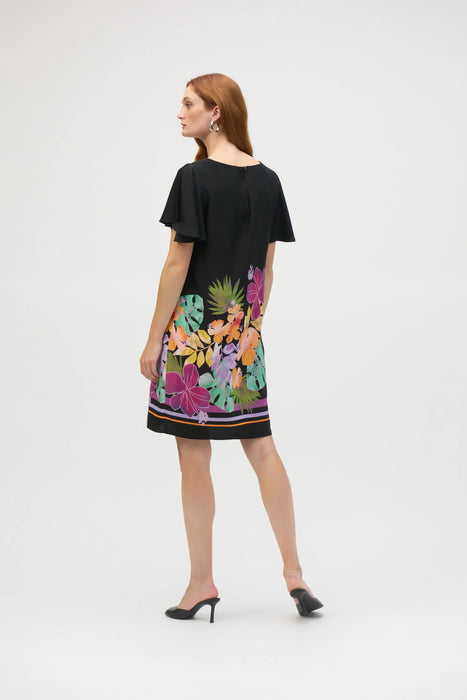 Joseph Ribkoff Black/Multi Tropical Print V-Neck Shift Dress 252151
