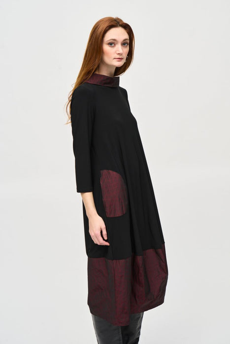 Joseph Ribkoff Black/Red Cowl Neck 3/4 Sleeve Midi Dress 243080