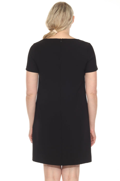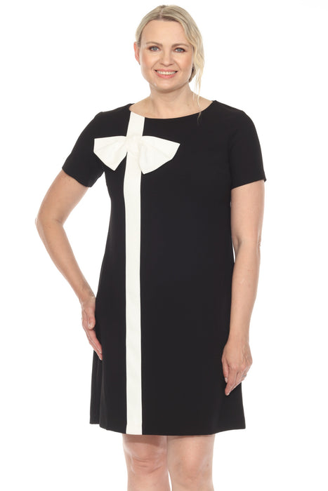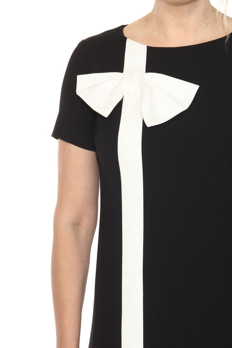 Joseph Ribkoff Black/Vanilla Bow Detail Short Sleeve Shift Dress 251139