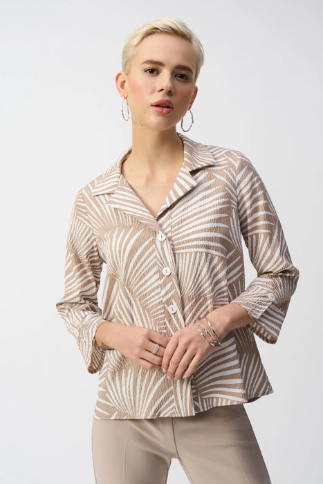 Joseph Ribkoff Dune/Vanilla Tropical Print Textured Trapeze Jacket 251089
