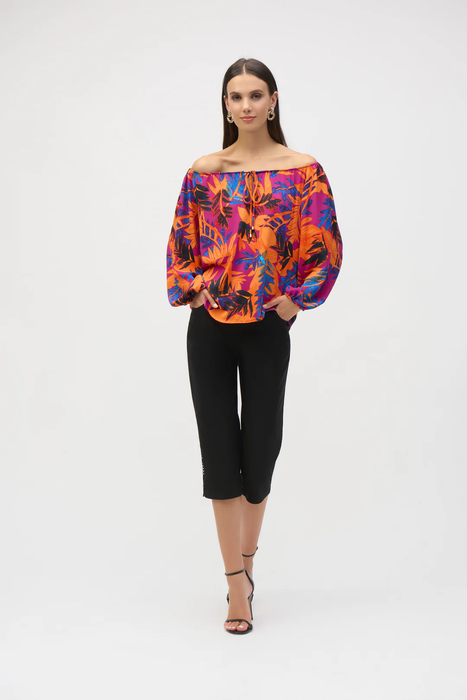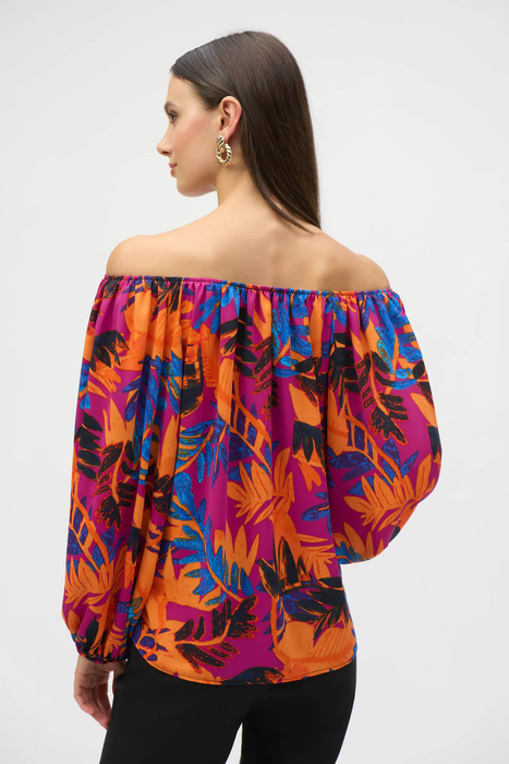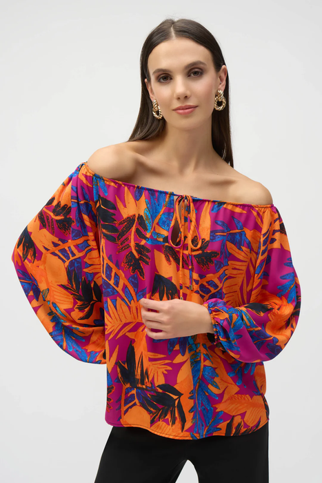 Joseph Ribkoff Multi Tropical Print Long Sleeves Off-Shoulder Top 252162