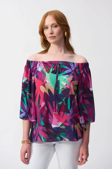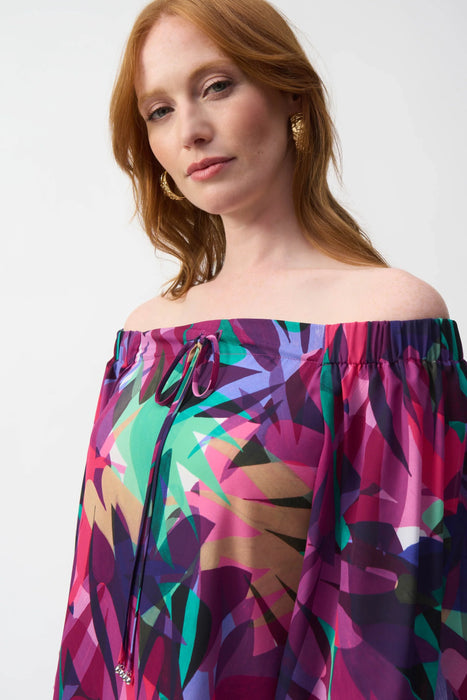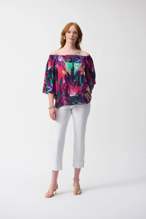 Joseph Ribkoff Multi Tropical Print Off-Shoulder Boxy Top 251179