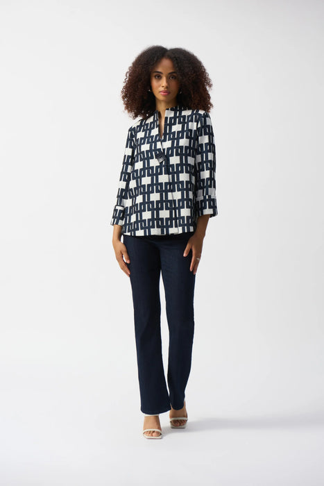 Joseph Ribkoff Off-White/Navy Geometric Jacquard Trapeze Jacket 251000