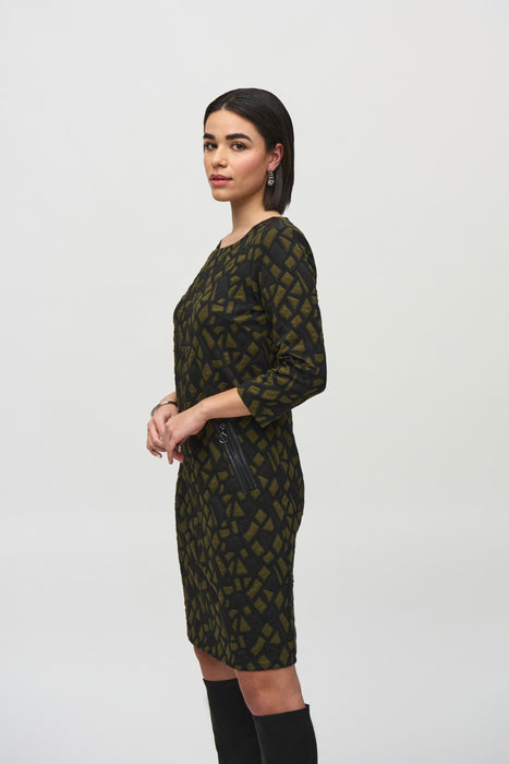 Joseph Ribkoff Olive/Black Geometric Jacquard Shift Dress 244039