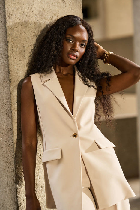 Sleek, structured, and endlessly versatile, this Joseph Ribkoff Vest brings tailored elegance to any outfit. Made from high-quality woven twill in a solid color, it features a fitted silhouette that flatters your shape while adding polish to your look. The sharp notch collar, sleeveless design, and one-button closure create a clean, modern finish, while decorative flap pockets offer just the right amount of detail. Ideal for layering over blouses, dresses, or lightweight knits, this vest is a timeless piece with contemporary appeal. Best paired with Joseph Ribkoff 251265 pant.