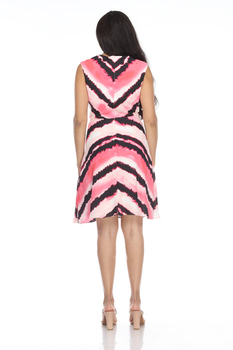 Joseph Ribkoff Pink/Black Chevron Tie-Dye Sleeveless A-Line Dress 222104 NEW