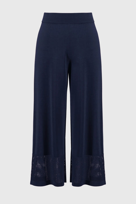 Effortless style meets cozy comfort in this Joseph Ribkoff Pant, designed in a soft sweater knit with a classic solid color. The culotte silhouette offers a relaxed fit and modern edge, while the open knit hem adds a touch of texture and sophistication. With an easy pull-on design and a comfortable elastic waistband, this pant is perfect for both lounging and elevated everyday wear. A chic and comfy choice for any season. Best paired with Joseph Ribkoff 251925 top.