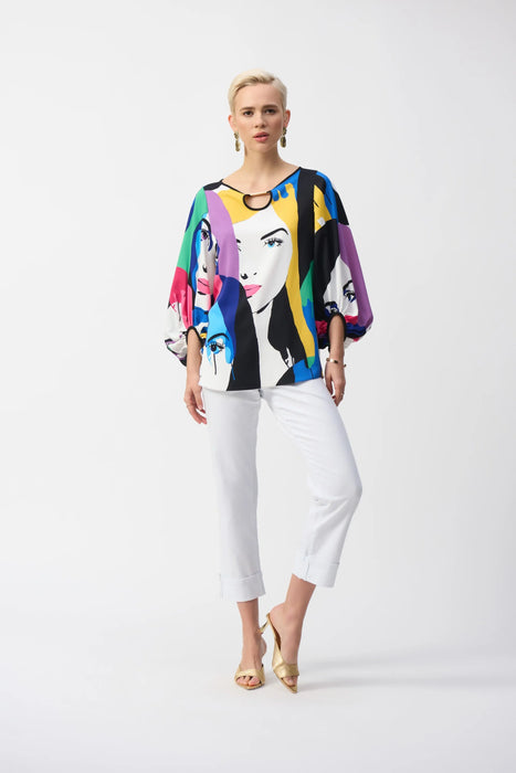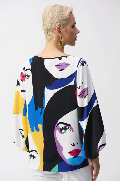 Joseph Ribkoff Vanilla/Multi Face Print Color Block Puff Sleeve Top 251148
