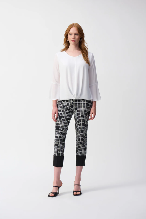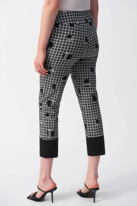Joseph Ribkoff Vanilla/Multi Plaid and Dot Print Cropped Pants 251210